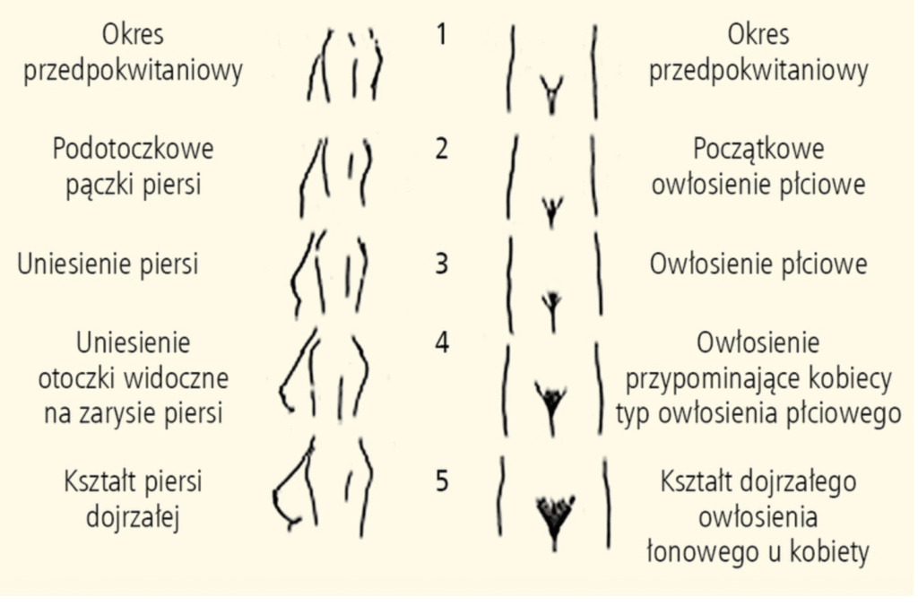Źródło: Rosenfield R.L. i wsp. (2008), Atlas fotograficzny okresów dojrzewania, American Academy of Pediatrics; © Elsevier. Za: Pediatria po Dyplomie.