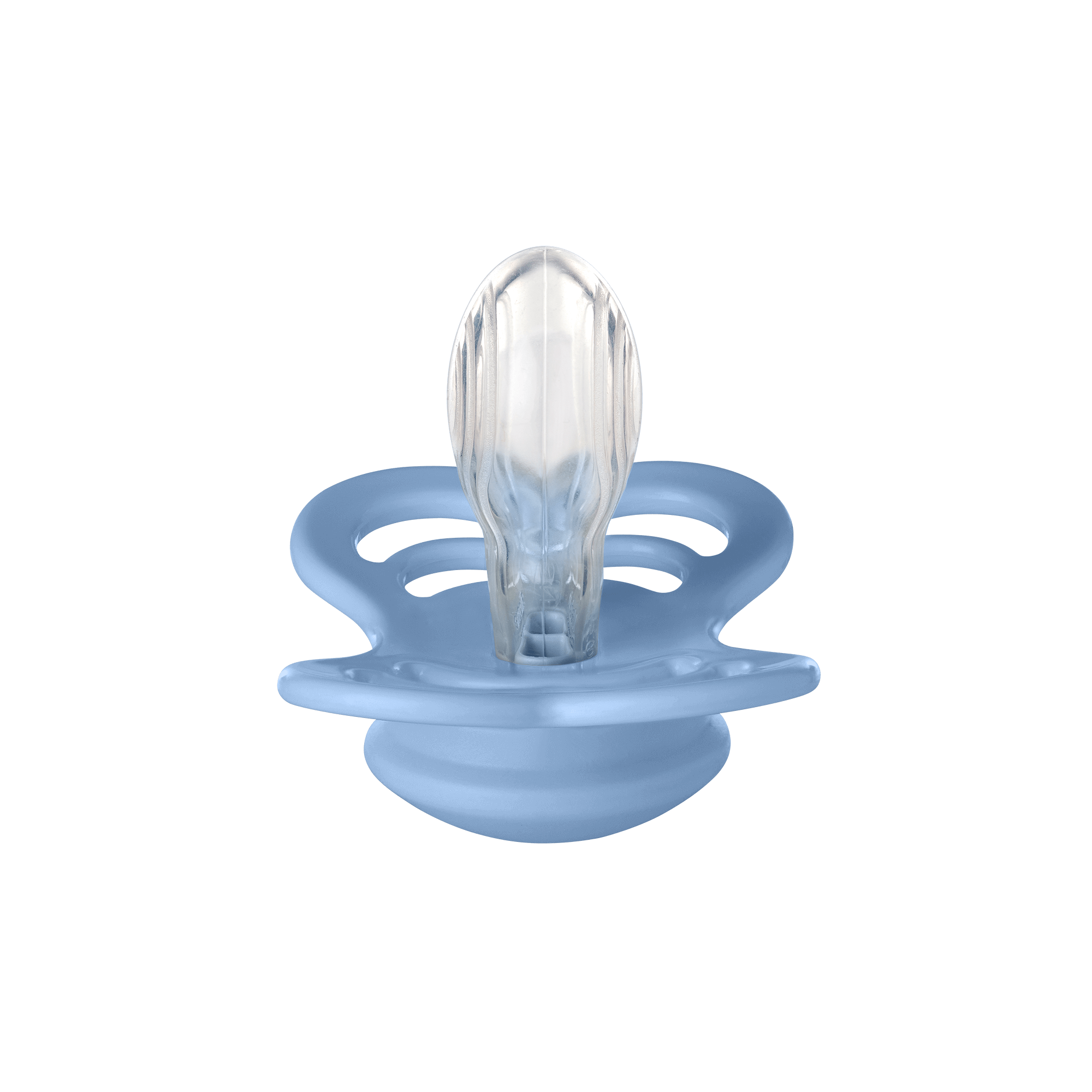 Część doustna smoczka jest symetrycznie spłaszczona, dzięki czemu konstrukcja umożliwia naturalne dopasowanie do jamy ustnej dziecka niezależnie od sposobu jej umieszczenia.